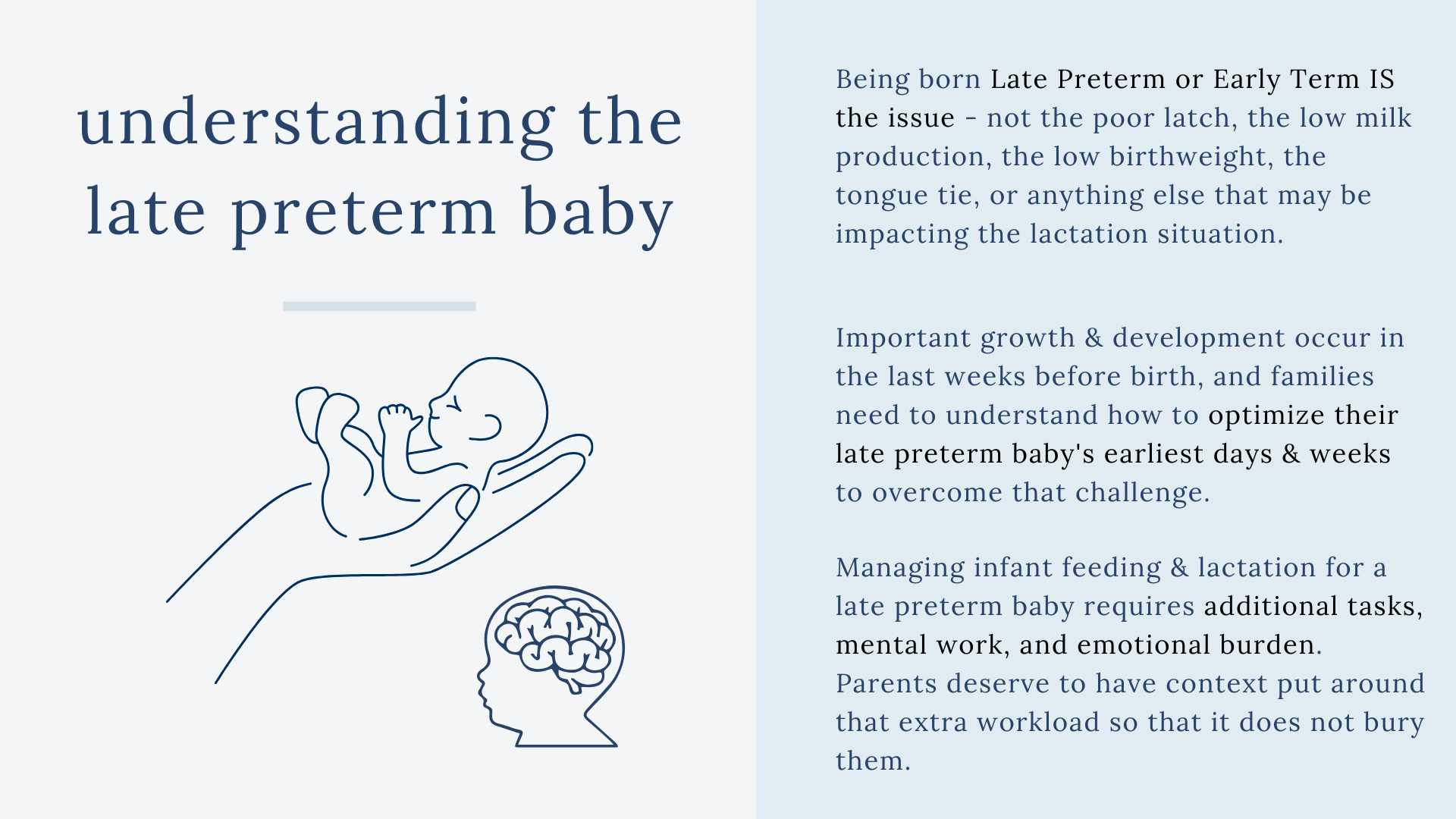 Early and appropriate lactation care for the late preterm dyad is critical because the entire situation is precarious. It’s a bit fragile right from the start, and the earlier we can intervene with the information mothers and families actually need, the better chance we have to support them to thrive.